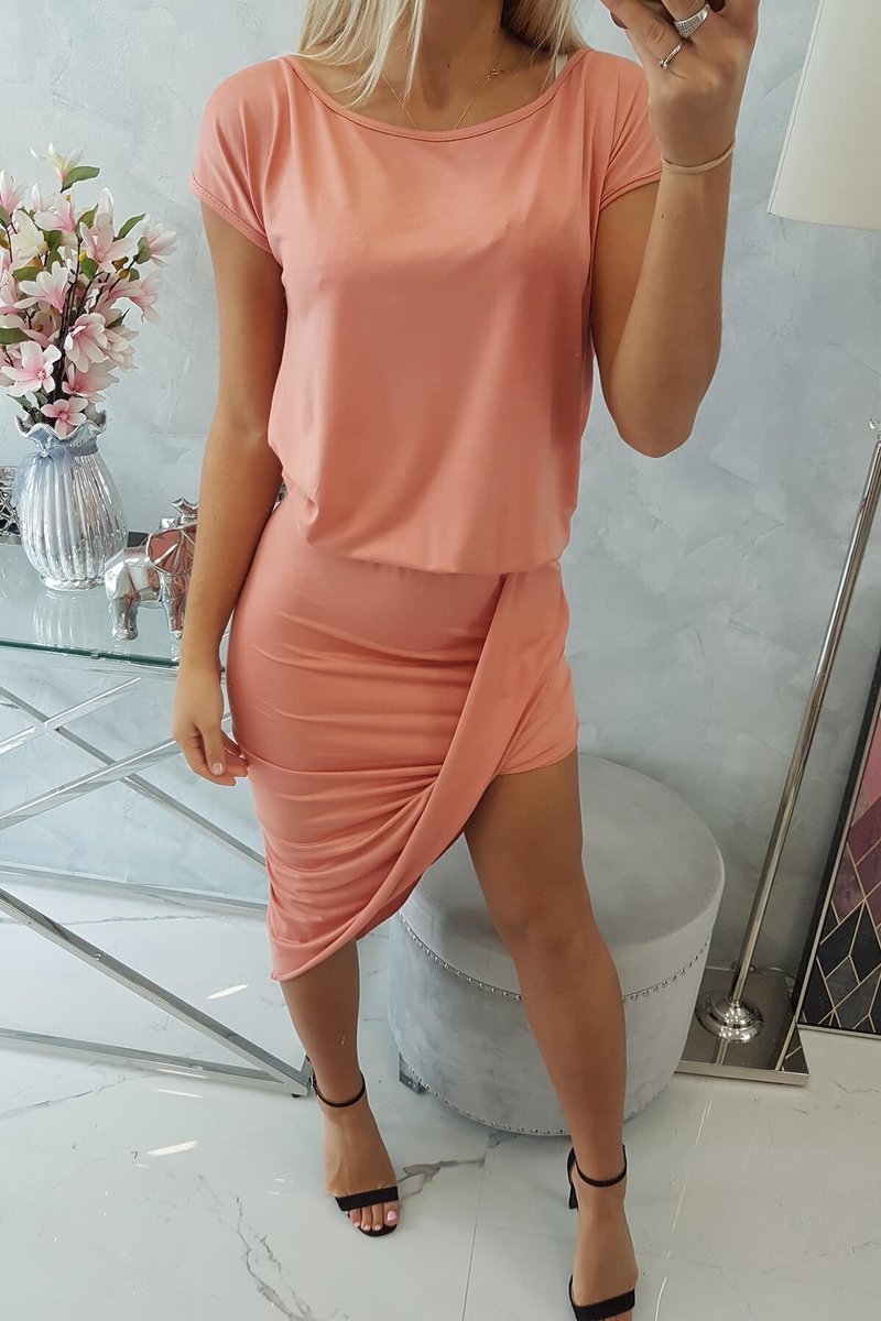 Úvod » DÁMSKA MÓDA » DÁMSKE ŠATY » Dámske asymetrické šaty MI61524 marhuľové